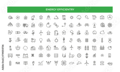 Energy Efficientry Vector Icon Set In Outline Style. Green Energy, Renewable Energy and Other Icons