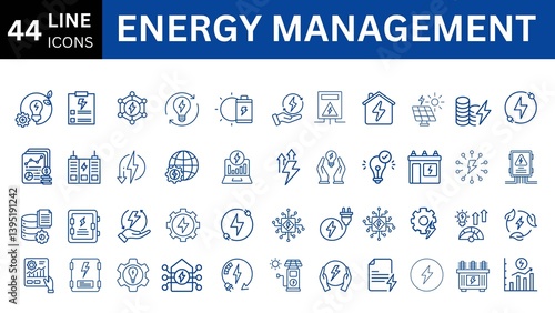 Energy management line editable icon set. Editable stroke. Vector illustration.