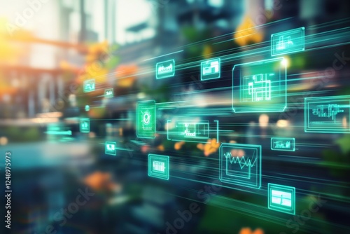 energy saving, recycle and environment theme. Blurred background with green natural in a bright and vibrant environment.