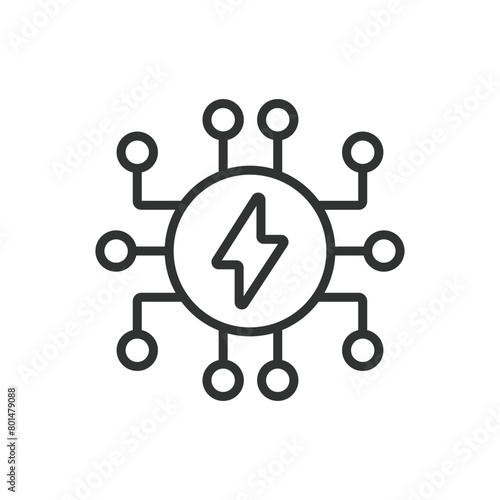 Energy system, in line design. Energy, system, power, renewable, solar, wind on white background vector. Energy system editable stroke icon.