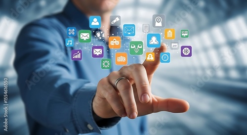 Engaging digital interface as hand interacts with social media application icons.
