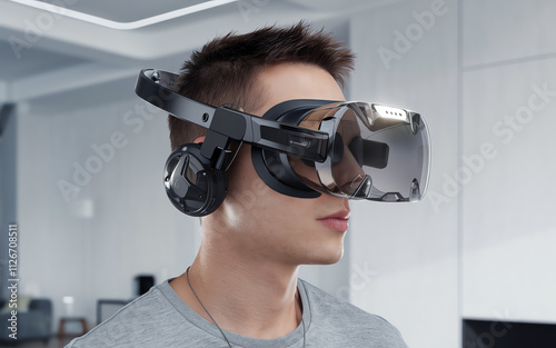 Engaging in virtual reality experience at home with advanced headset technology