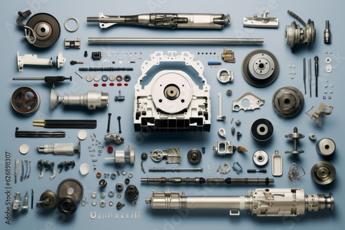 Engine layout, deconstructed. Beautiful illustration picture. Generative AI