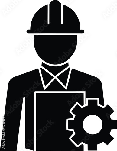 Engineer with blueprint silhouette vector art illustration