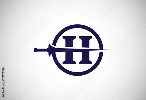 English alphabet H with spear lance. Creative spear logo design template vector illustration