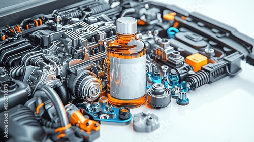 Enhance engine performance with sleek double-exposure engine oil additive design