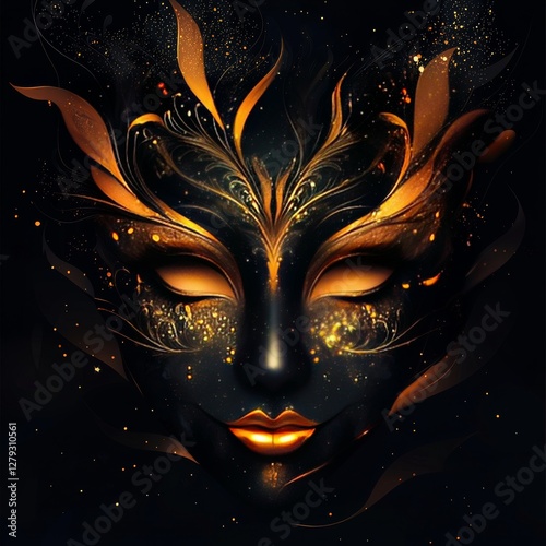 Enigmatic Mask with Elegant Patterns and Golden Accents