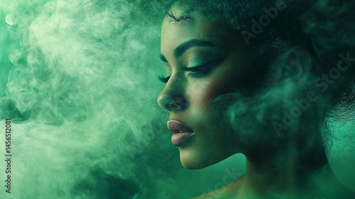 Enigmatic Woman in Emerald Smoke: A Portrait of Mystery and Allure