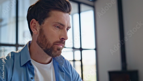 Entrepreneur hands doing paperwork at apartment closeup. Winner man rejoicing