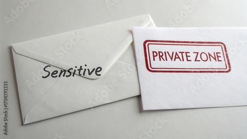 Envelope with Sensitive Imprint and Private Zone Notification Card