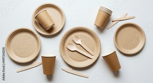 Environmentally Friendly Disposable Dining Set on a Clean White Table for Eco Conscious Gatherings