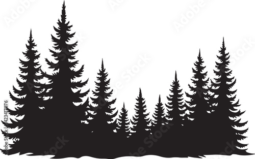 Epic Mountain Biking Adventure Silhouette with Pine Forest, Moon, and Wilderness Scenery