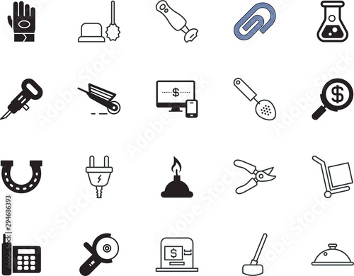 equipment vector icon set such as: electrician, magnifying, road, menu, box, contact, call, instrument, meal, shears, trim, cargo, red, field, pruner, goods, immersion, erlenmeyer, cultivate, closeup