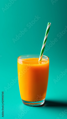 Erfrischender Karottensaft in Glas mit gestreiftem Strohhalm