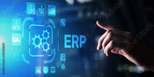 ERP - Enterprise resource planning business and modern technology concept on virtual screen.