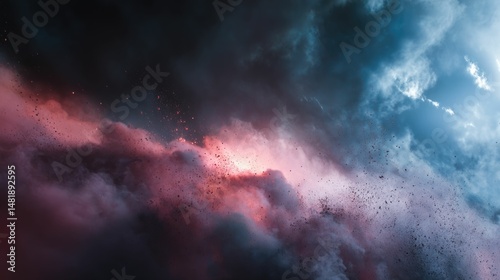 Eruptive Cloudscape: A Dramatic, Pink and Blue Celestial Scene