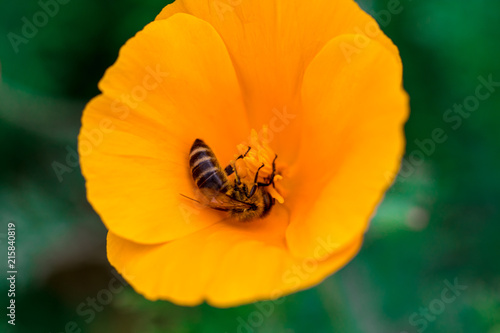 Eschscholzia californica cup of gold bunch of flowers in bloom, californian field, ornamental wild plants on a meadow, orange petals in green grass
