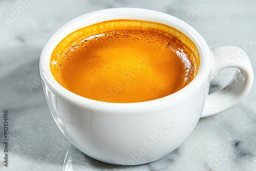 Espresso in White Cup on Marble Surface