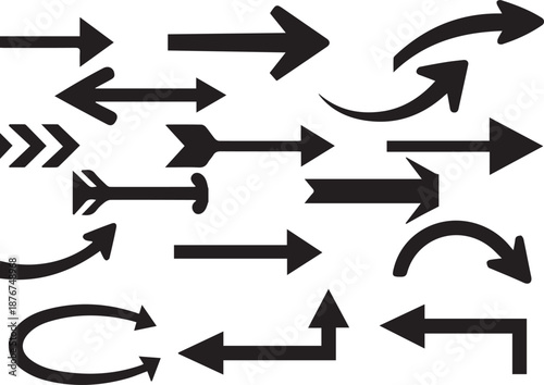 Essential Black Arrow Icon Set, Diverse Directional Vector Shapes for Infographics