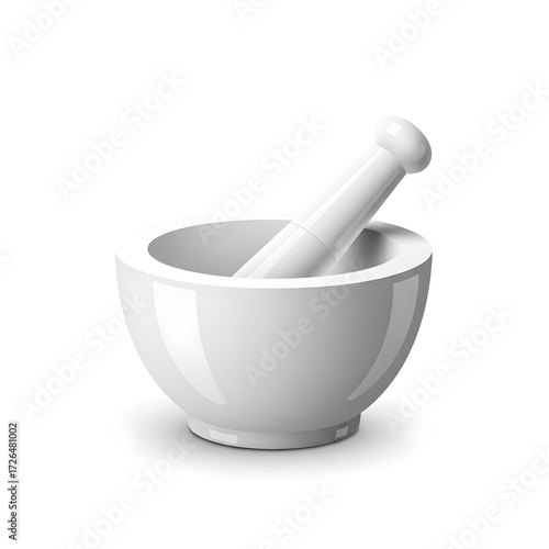 Essential clean white mortar and pestle tool for grinding spices herbs or compounding medicines in a studio setting
