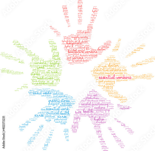 Essential Workers Word Cloud on a white background.