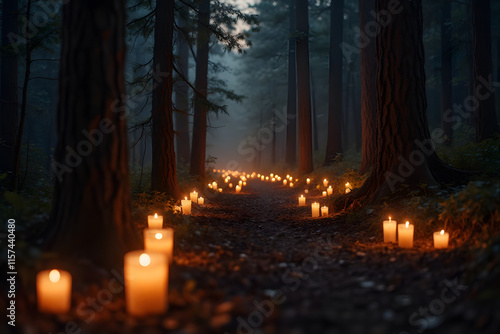 Estonian Candle Festival with Serene Forest Landscape and Flickering Candles