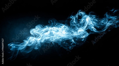 Ethereal blue swirling smoke tendrils with wispy light effects on a dark background