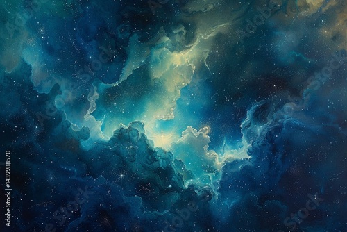 Ethereal Deep Space Nebula with Stars and Glowing Light in Blue and Teal Tones