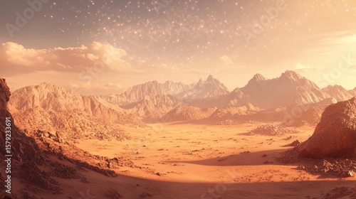 Ethereal Martian Vista: A Panoramic Exploration of a Crimson Desert Planet