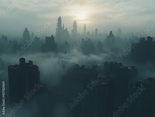 Ethereal Metropolis: An Urban Landscape Engulfed in a Sea of Mystical Fog