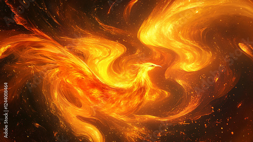 Ethereal Phoenix Rising from Swirling Flames