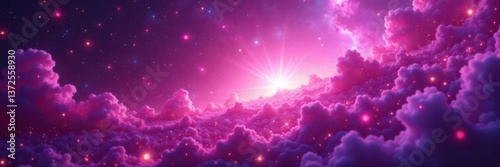 Ethereal pink-purple cosmic landscape, glittering stars, swirling nebula , image, cosmic, sparkle