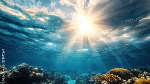 Ethereal Underwater Light Rays Penetrating Ocean Surface