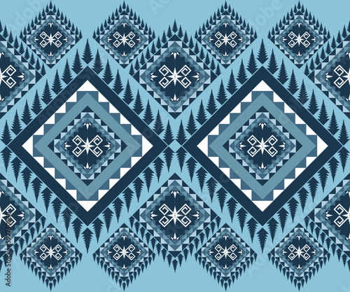 Ethnic folk geometric seamless pattern in blue tone in vector illustration design for fabric, mat, carpet, scarf, wrapping paper, tile and more