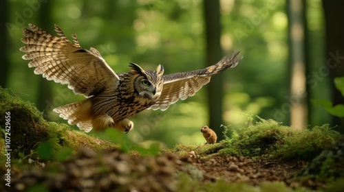 Eurasian Eagle-Owl Hunting in a Forest