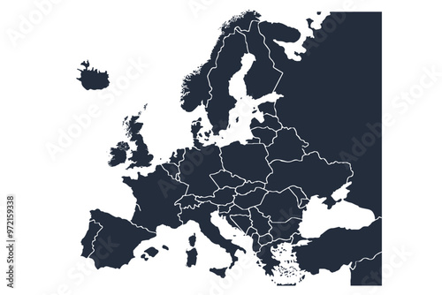 Europe map on white background. All countries in Europe Modern color. Can use for printing, website, presentation element, textile. World map vector illustration, high-resolution, travel.