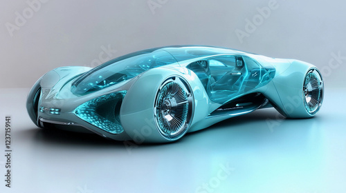 European built futuristic car design showcasing innovative lines and transparent details in a minimalist setting. Generative AI