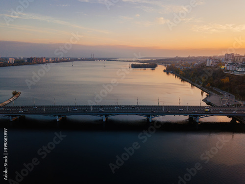 Evening autumn Voronezh, Chernavsky bridge, aerial view