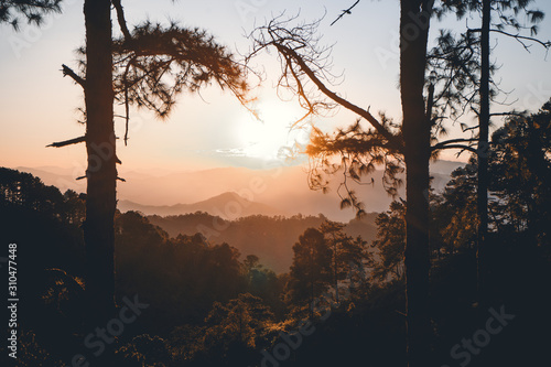 Evening pine forest - Green forest beautiful nature-