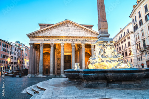 Evening view of the Roman Pantheon, an ancient structure dating back to the 1st century AD, built in honor of King Marcus Agrippa.