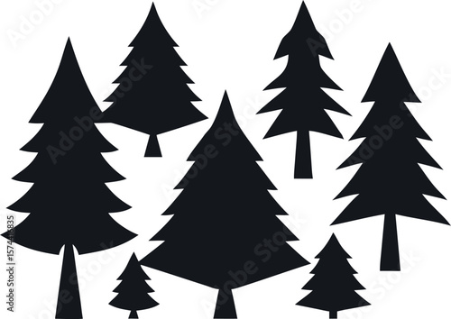 Evergreen Tree Silhouettes in Forest Landscape – Black Vector Collection