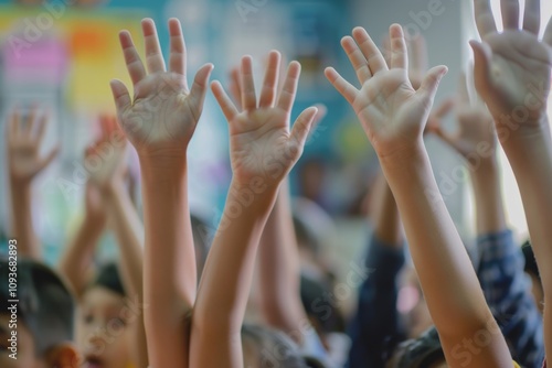 Excited and Eager Children Raising Their Hands in the Classroom to Participate Actively in Their Learning
