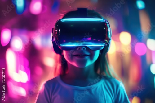 Excited Child Wearing VR Headset Immersed in a Magical Virtual Reality Experience