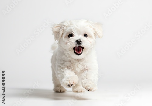 Excited Puppy with Open Mouth Running Toward Camera