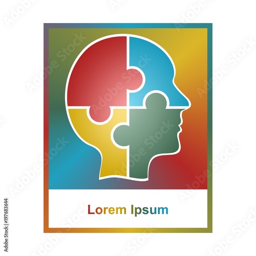 Exclusive Corporate business colorful sign with a profile of a human head made of four puzzles of different colors in rainbow square