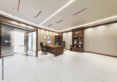 Executive office with a large mahogany desk.