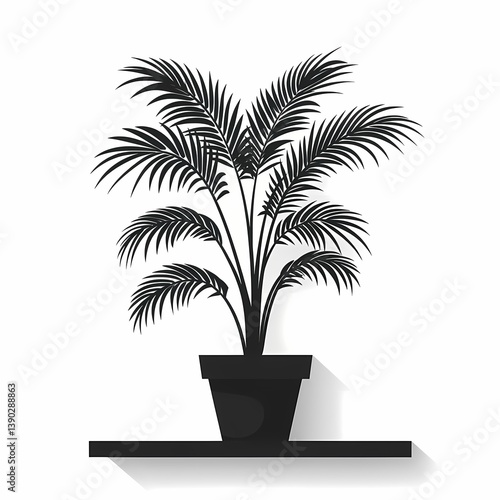 Exotic Palm Houseplant: Black Silhouette in Minimalistic Interior Decor