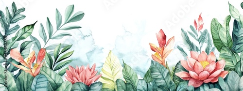 Exotic plants arrangement Watercolor artwork Illustrated template Handcrafted design