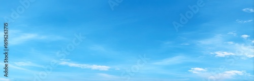 Expansive blue sky filled with wispy white clouds creating a serene and calming atmosphere in a horizontal composition