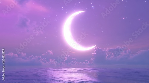 Expansive Cosmic Landscape with Glowing Crescent Moon and Distant Galaxies